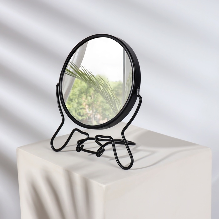 Зеркало настольное, двустороннее, с увеличением, зеркальная поверхность 11 × 15 см, цвет чёрный