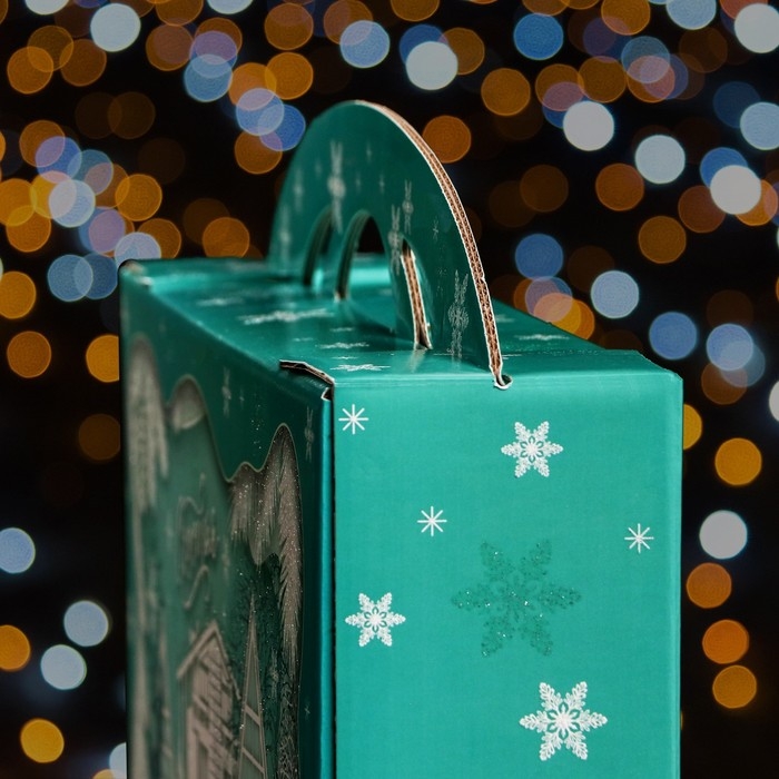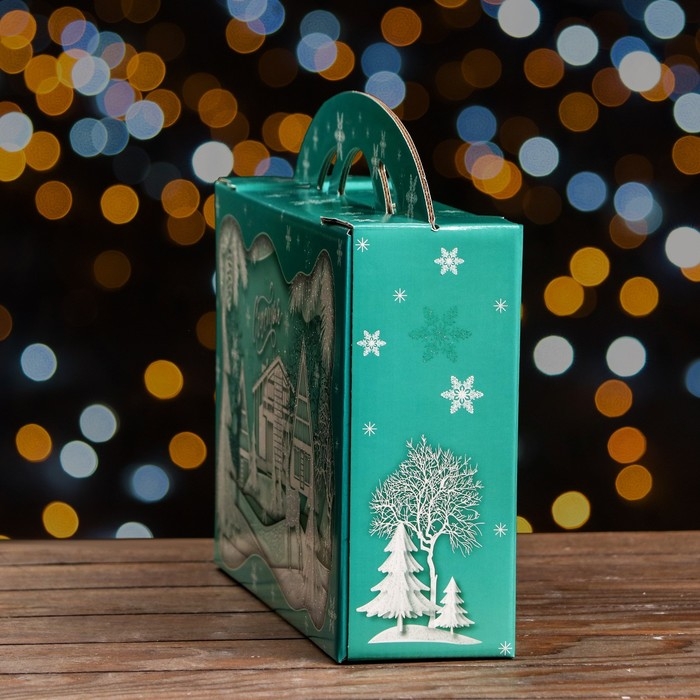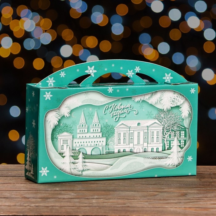 Новый год. Подарочная коробка "Заснеженный город" , Портфель макси широкий , 37 x 8 x 20,2 см.