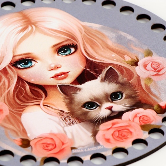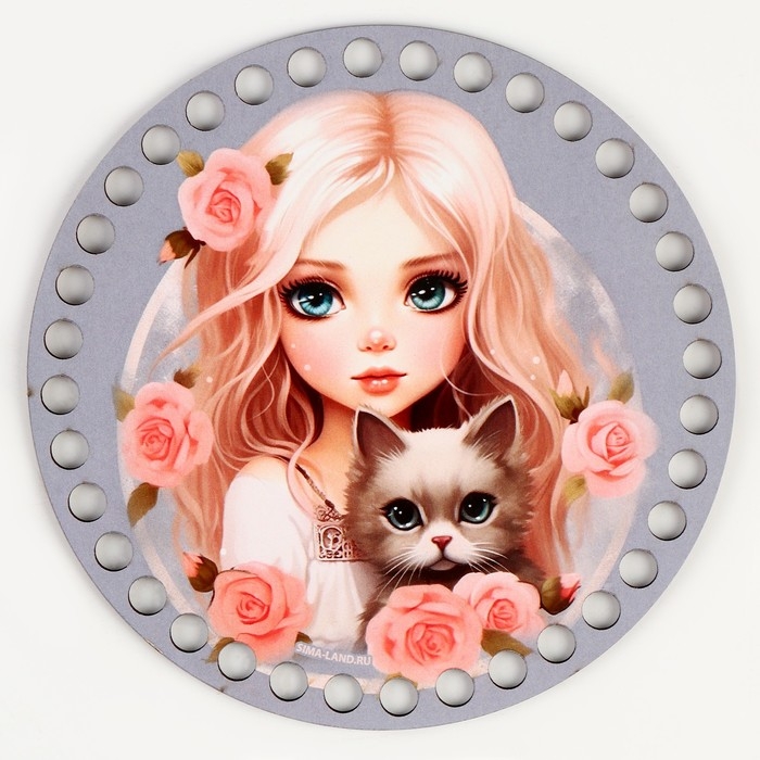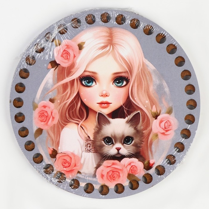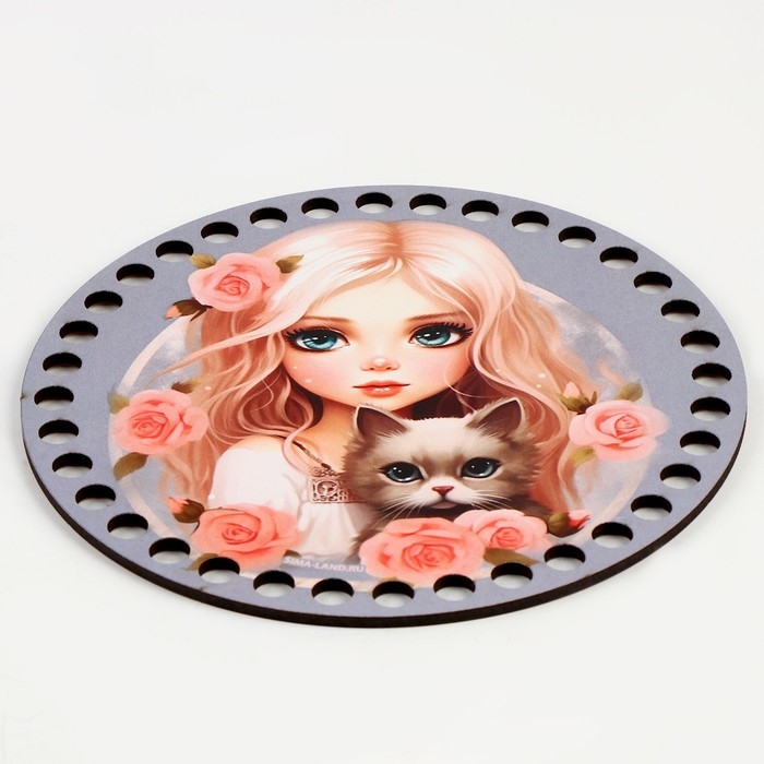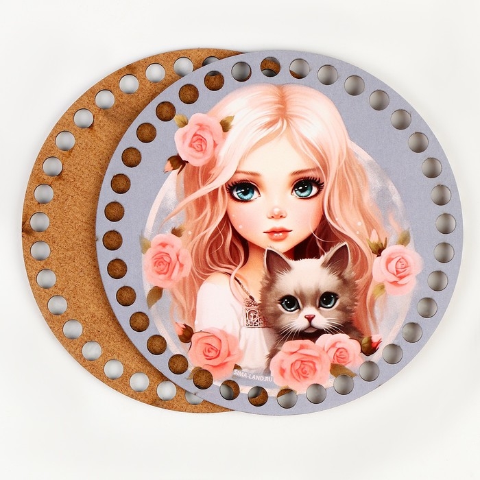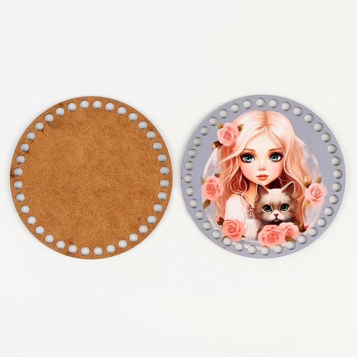 Донышки для вязания 2 в 1 «Девочка с котенком», круг 15 см, хдф 3 мм