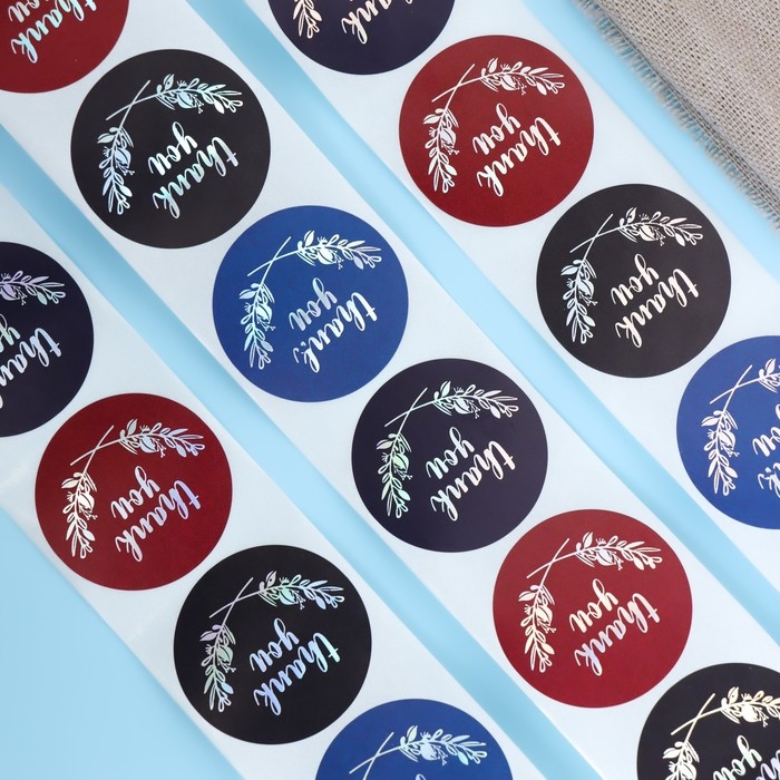Наклейки в рулоне "Thank you",голография,500 шт,3,8 х 3,8 см