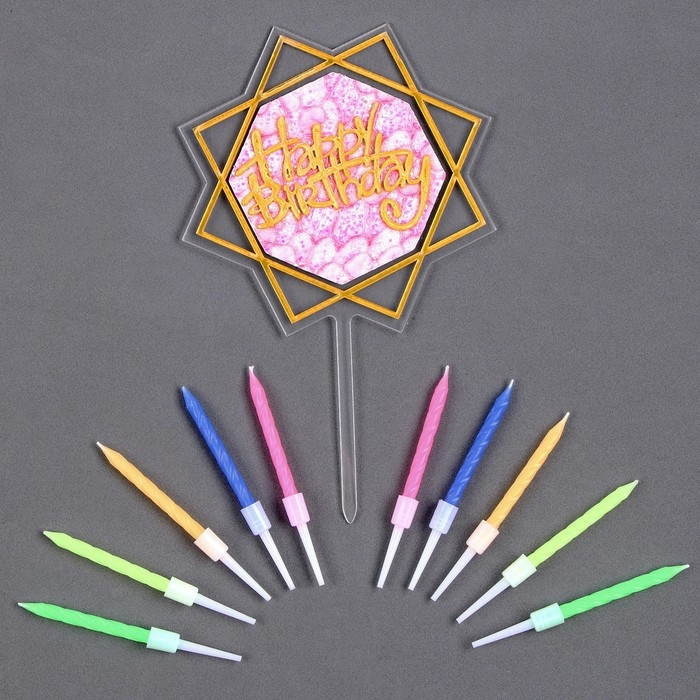 Набор для украшения торта: топпер «С днём рождения», 1 шт., 10 свечей