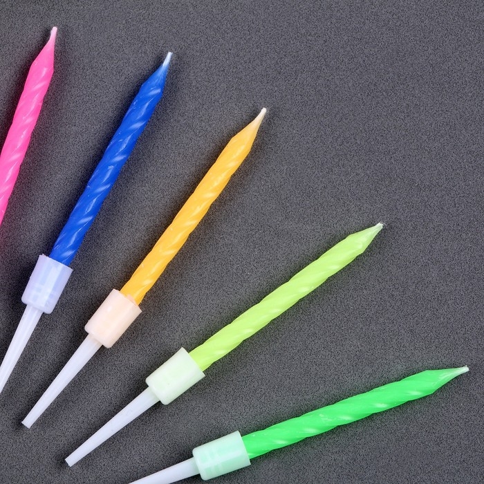 Набор для украшения торта «С днём рождения» включает в себя один яркий топпер с праздничной надписью и 10 разноцветных свечей. Этот набор поможет легко и быстро украсить торт к любому дню рождения. Топпер выполнен из качественного пластика и легко устанавливается благодаря крепкому держателю. Свечи из воска создадут тёплую и праздничную атмосферу.