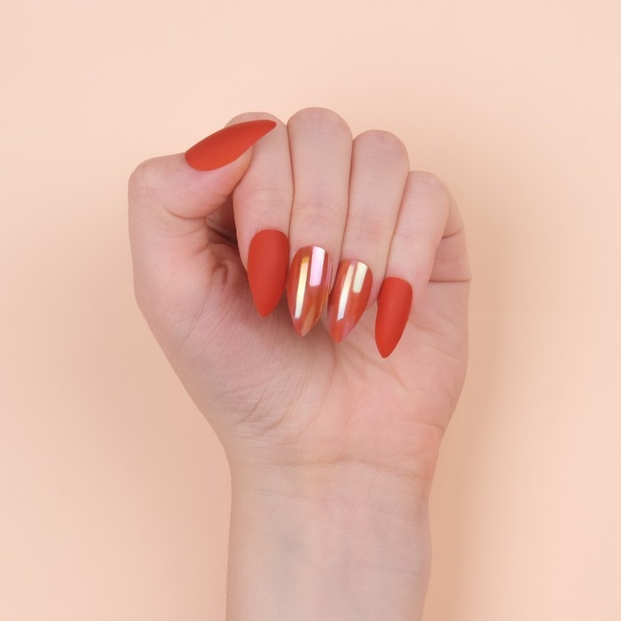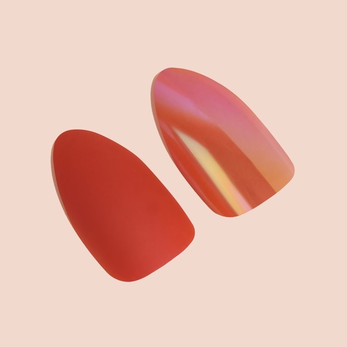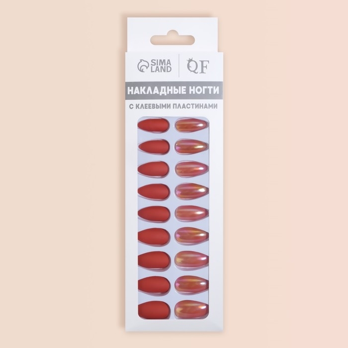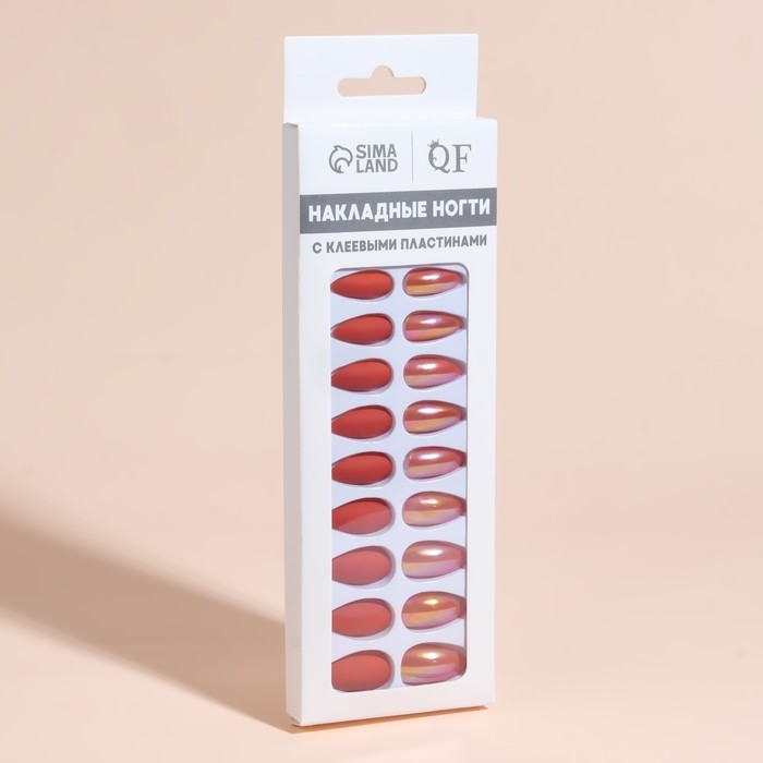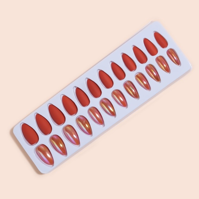 Накладные ногти, 24 шт, с клеевыми пластинами, форма миндаль, матовый/голография, цвет коралловый