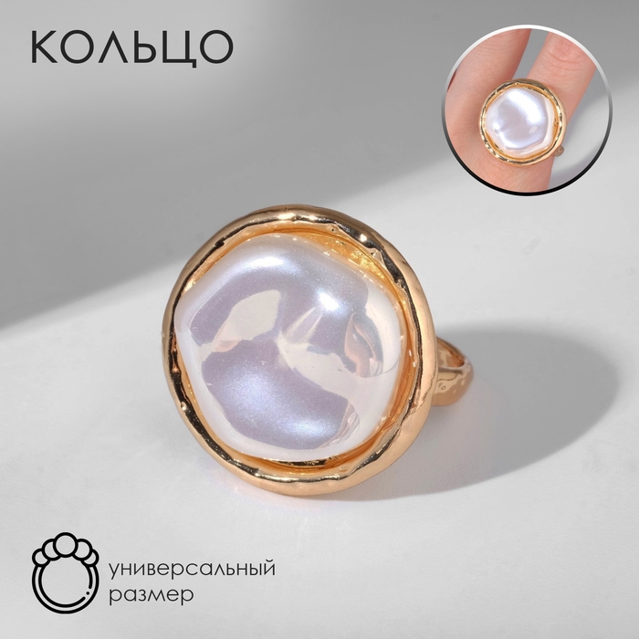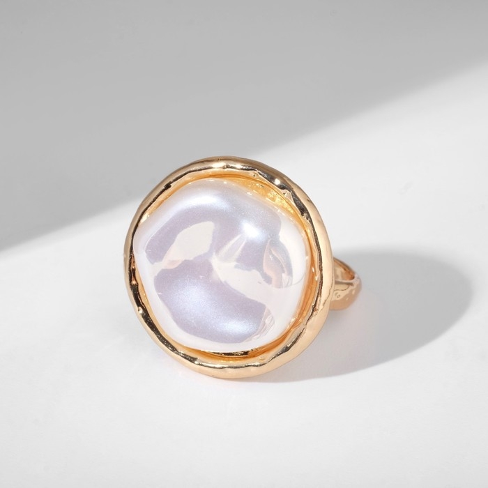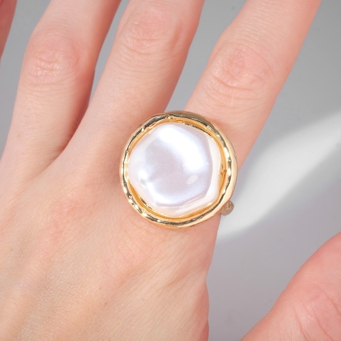 Кольцо «Перламутр» круг, цвет белый в золоте, безразмерное