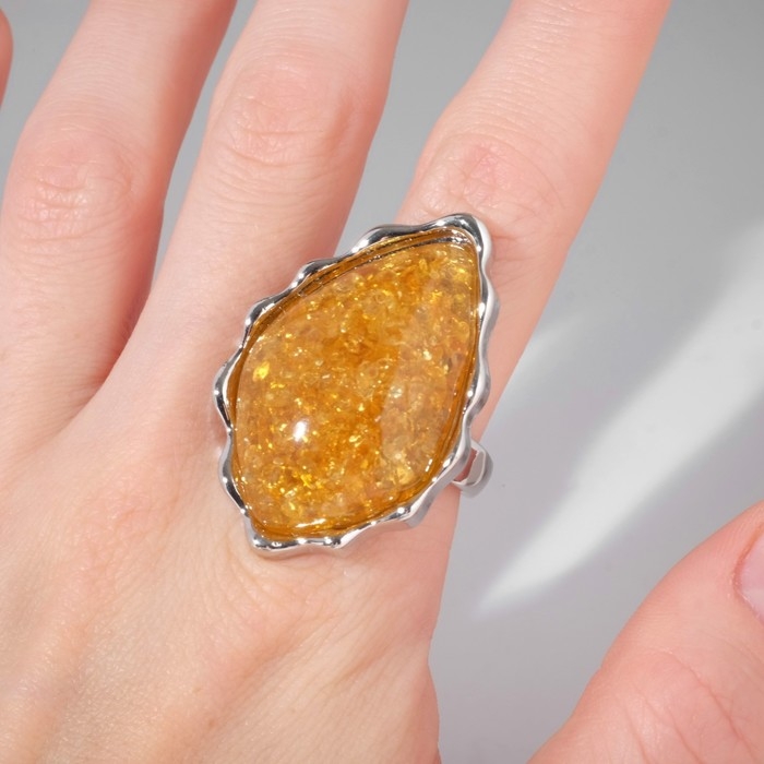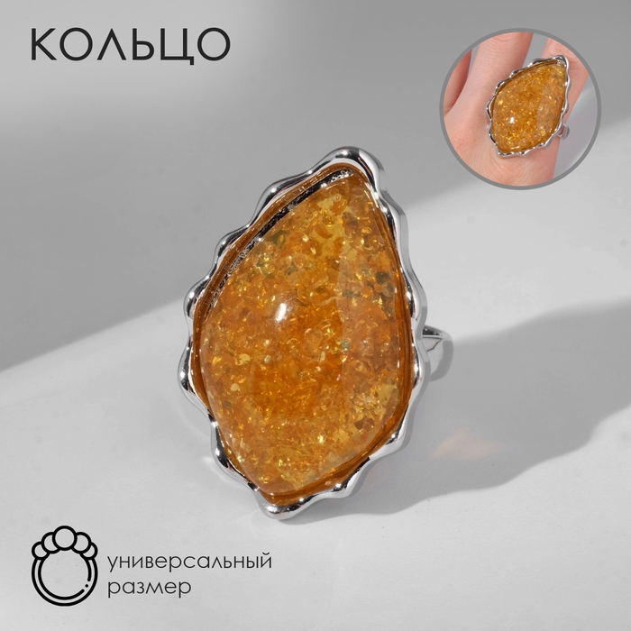 Кольцо «Изыск» ромб янтарный, цвет коричневый в серебре, безразмерное