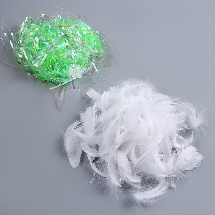 Набор для творчества и декора «Перья белые + наполнитель», цвет зеленый