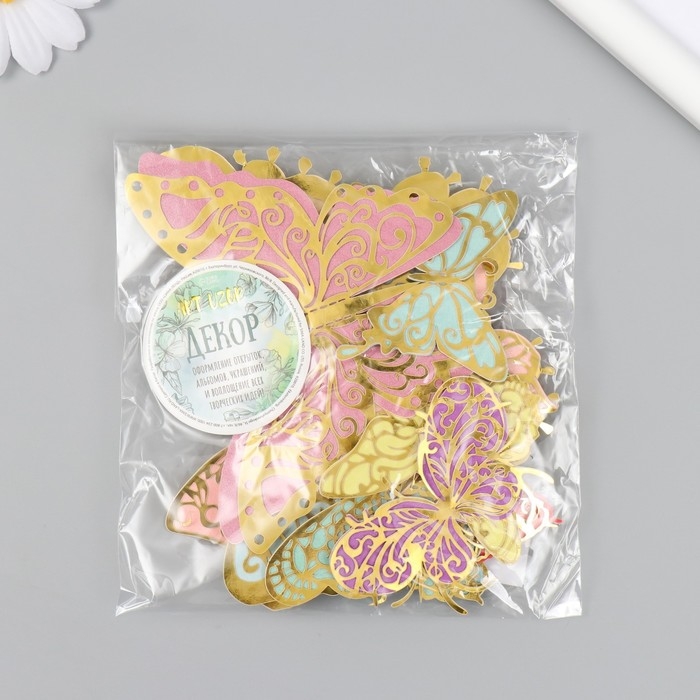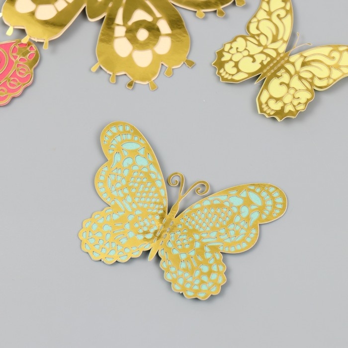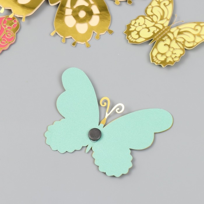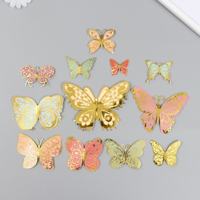 Бабочки картон двойные крылья "Ажурные. Нежные расцветки" набор 12 шт h=4-10 см на магните