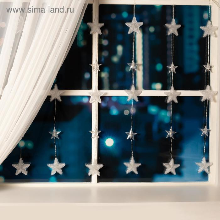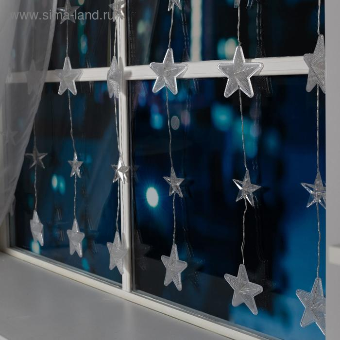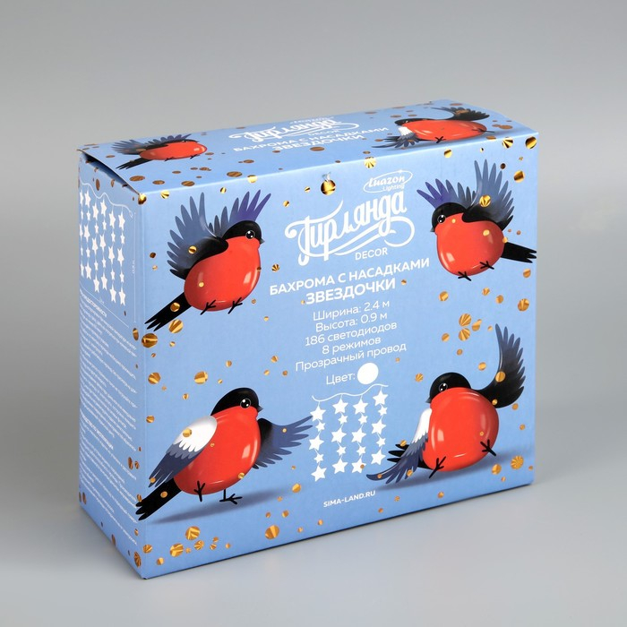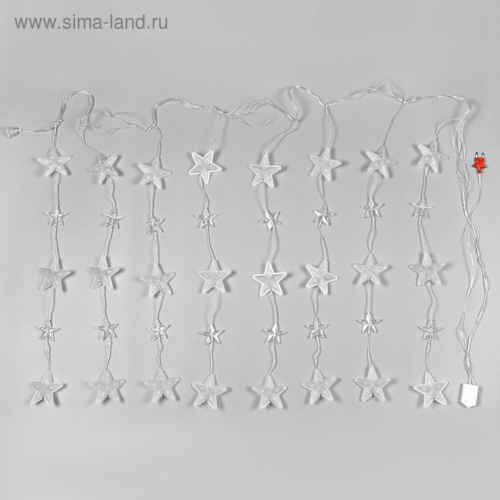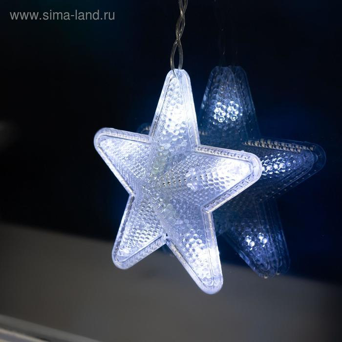 Гирлянда «Бахрома» 2.4 × 0.9 м с насадками «Звёздочки», IP20, прозрачная нить, 186 LED, свечение белое, 8 режимов, 220 В
