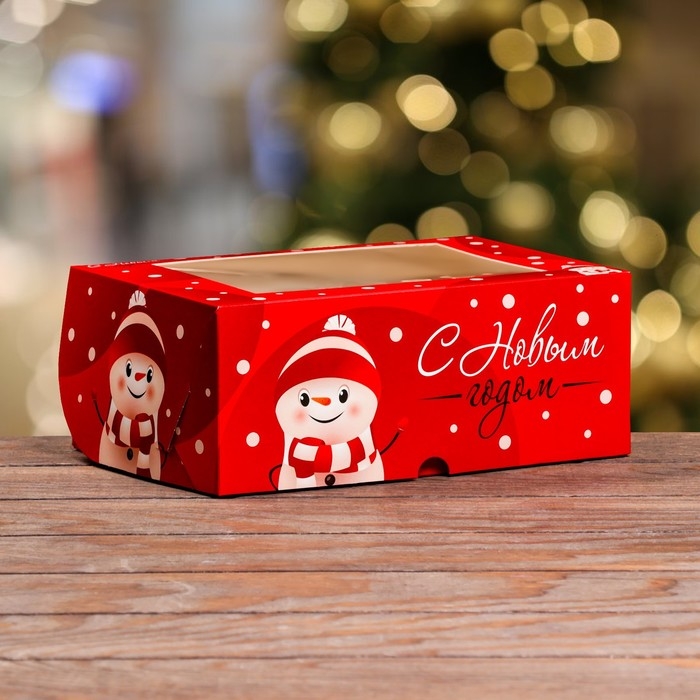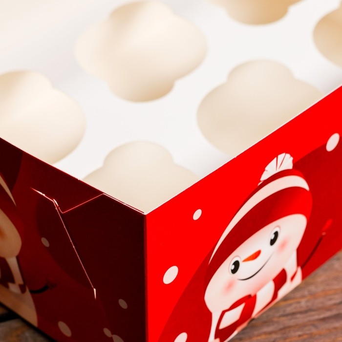 Упаковка на 6 капкейков с окном "Милый снеговик", 25 х 17 х 10 см