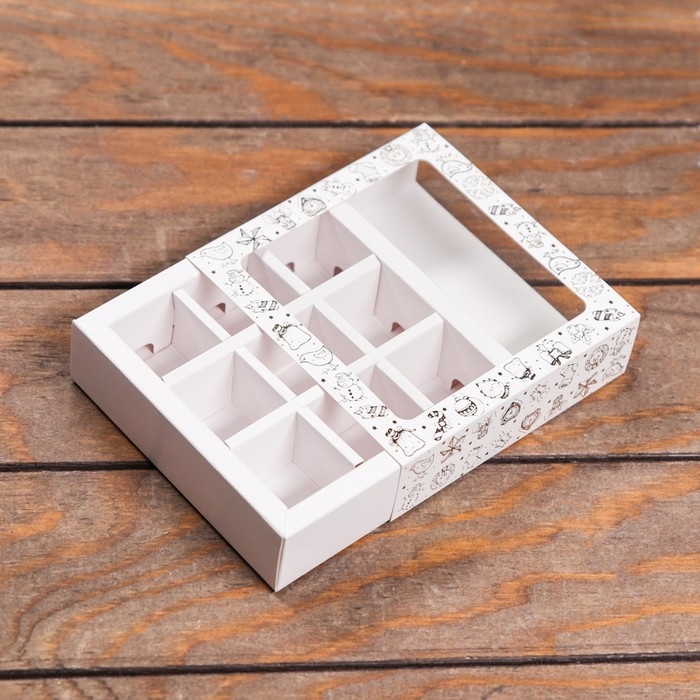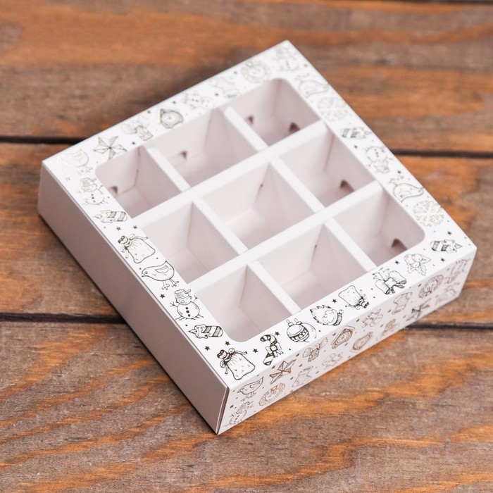 Коробка с обечайкой и окном для 9 конфет — идеальный выбор для хранения и презентации ваших любимых сладостей.