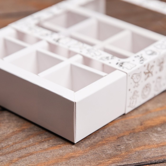 Коробка для 16 конфет, белая 17,7 х 17,7 х 3,8 см. Кондитерская упаковка