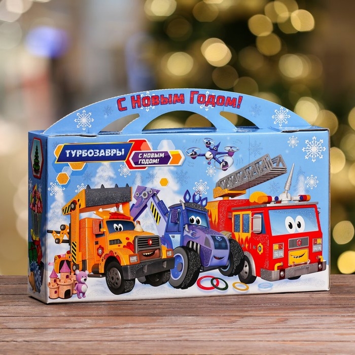 Новый год. Подарочная коробка "Турбозавры", Портфель , 37 х 8 х 20,2 см.
