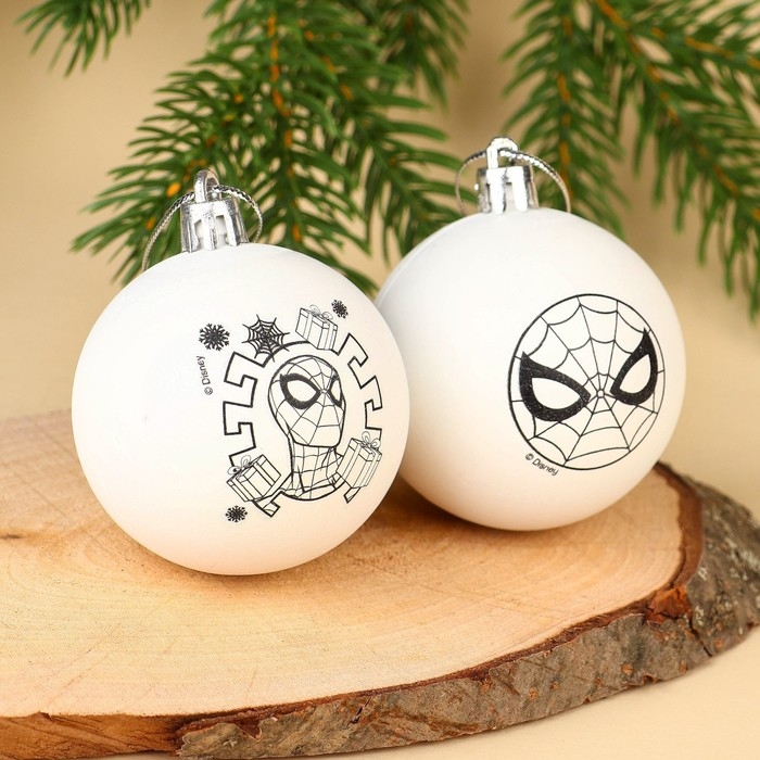 Набор ёлочных шаров под раскраску, 2 штуки, 5.5 см, Человек паук