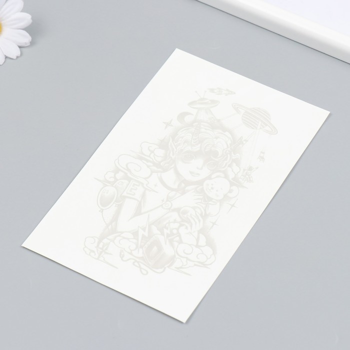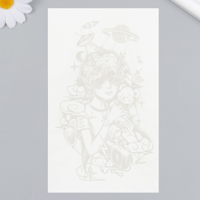 Татуировка на тело синяя "Космический мальчик" 18х11 см