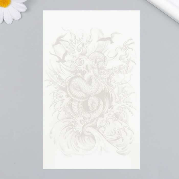 Татуировка на тело синяя "Морской змей" 18х11 см