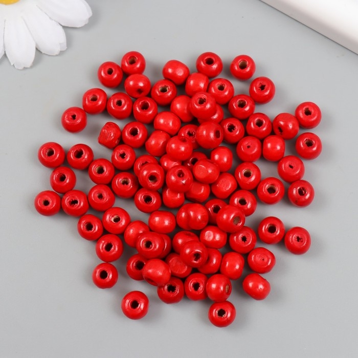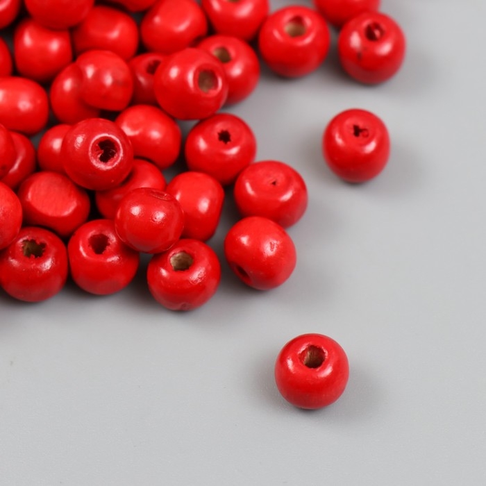 Бусины для творчества дерево "Красные" d=0,8 см набор 20 гр