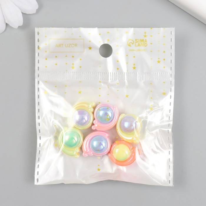 Бусина для творчества пластик "Улитка" набор 6 шт. цветная с перламутром МИКС 1,4х1,8 см