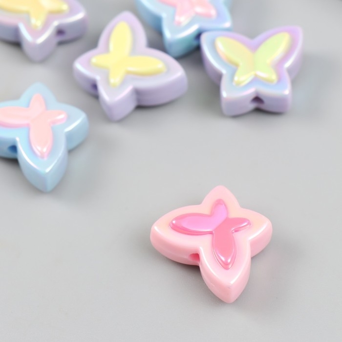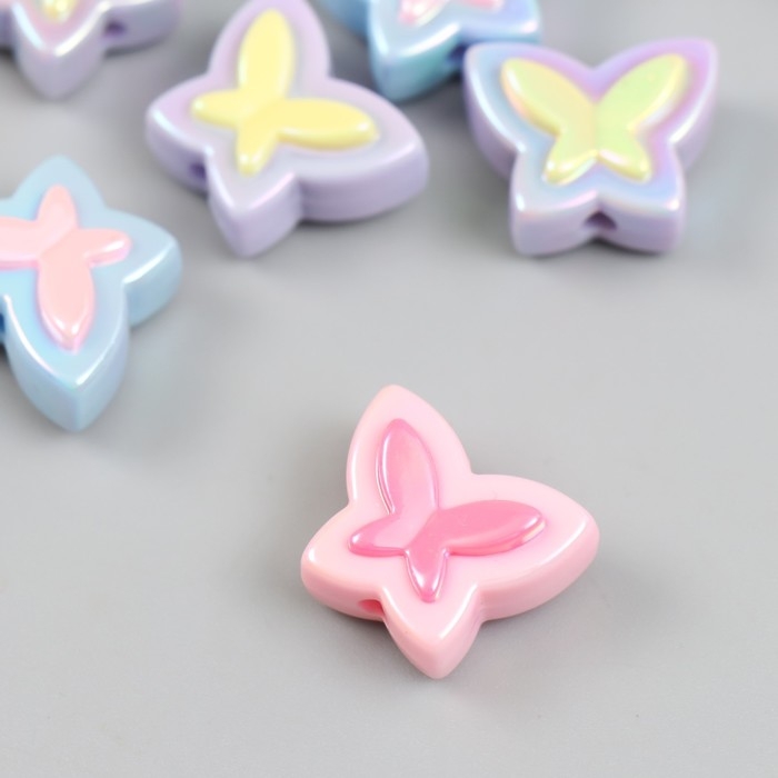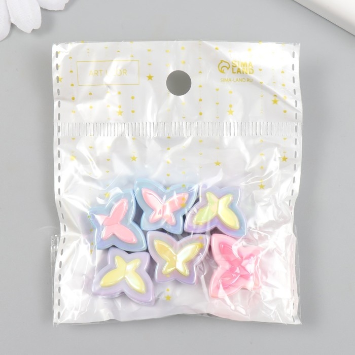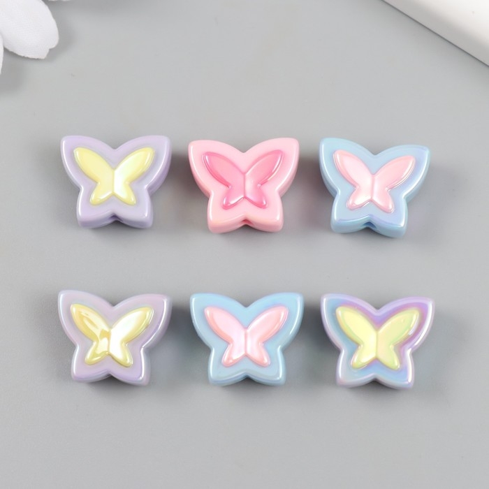 Бусина для творчества пластик набор 6 шт. "Бабочка" цветная с перламутром МИКС 2х1,6 см