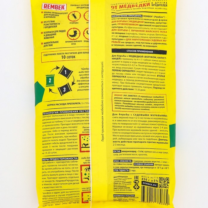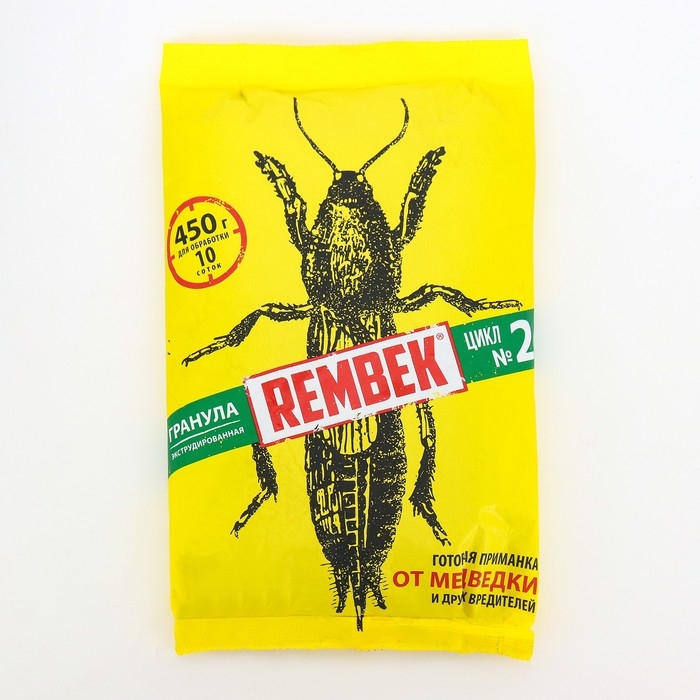 Рембек Гранула от медведки– высокоэффективное средство для защиты сельскохозяйственных культур от медведки и проволочника с особо привлекательным для вредителей вкусом и запахом. Обладает 100% эффектом уничтожения насекомых, их яиц и личинок.