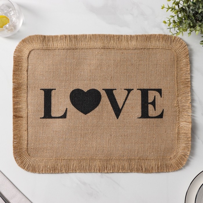 Салфетка сервировочная на стол Доляна «Любовь», 40×30 см, цвет бежевый