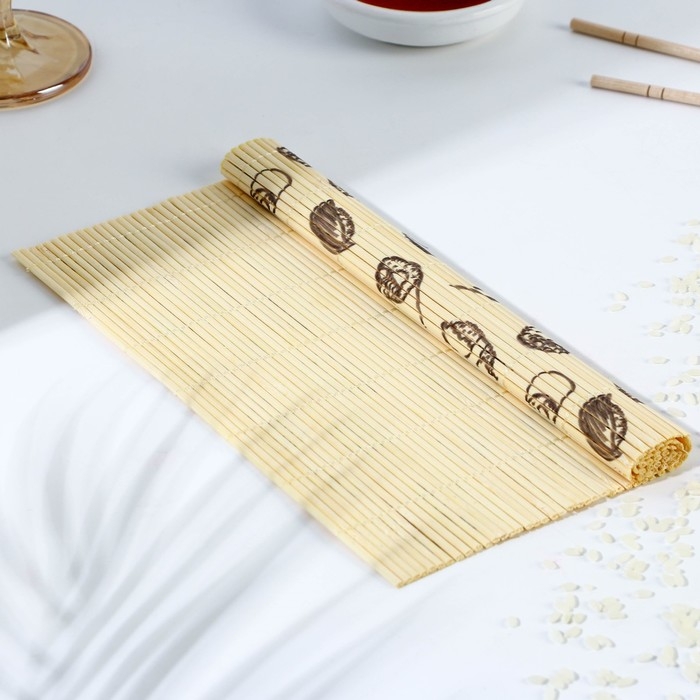 Циновка Макису для приготовления суши и роллов/коврик бамбуковый «Суши», 22 х 24 см