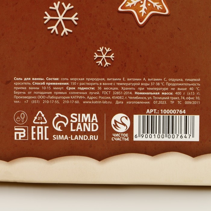 Соль для ванны «Уютной зимы!», 400 г, аромат шоколадного печенья, Новый Год