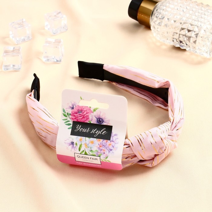 Ободок для волос "Амата" золотая нить, 3 см, розовый