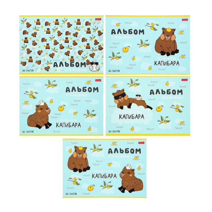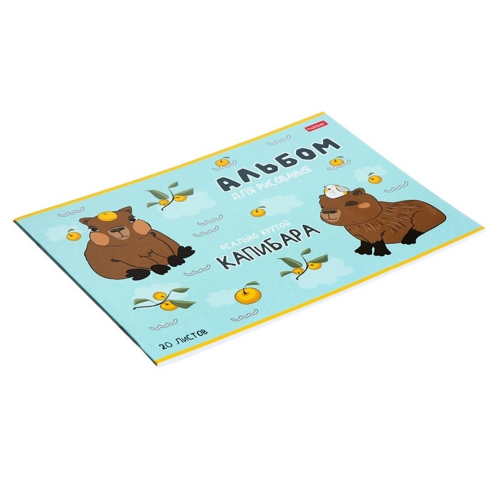 Альбом для рисования А4, 20 листов на скрепке "Реально крутой Капибара", обложка мелованный картон, блок 100 г/м2, 5В МИКС