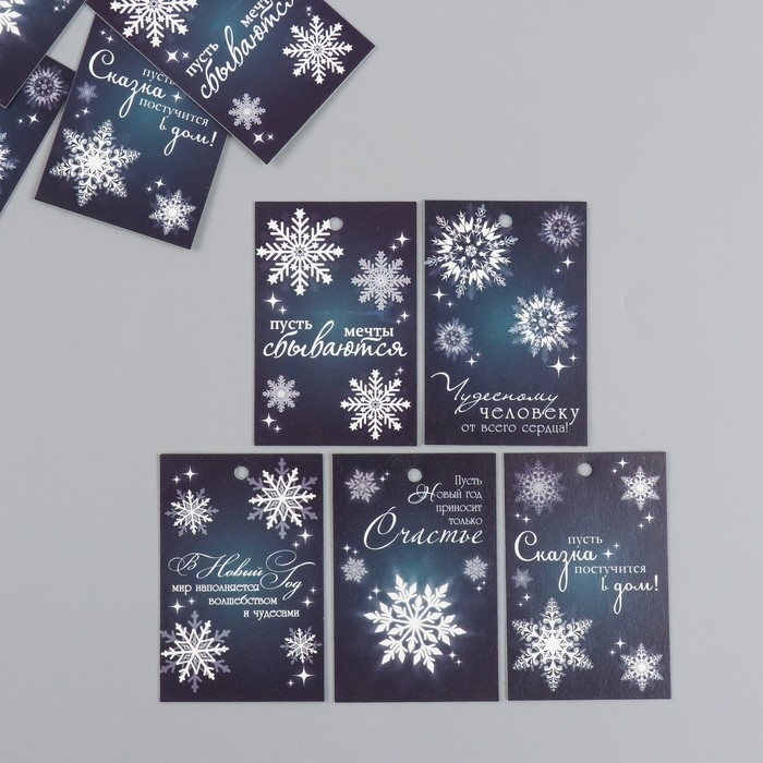 Бирка картон "Снежинка" набор 10 шт (5 видов) 4х6 см