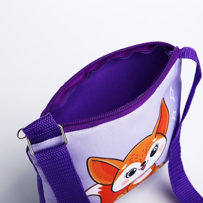 Сумка детская для девочки "Лисичка", 18х14 см, отд на молнии, цвет фиолетовый