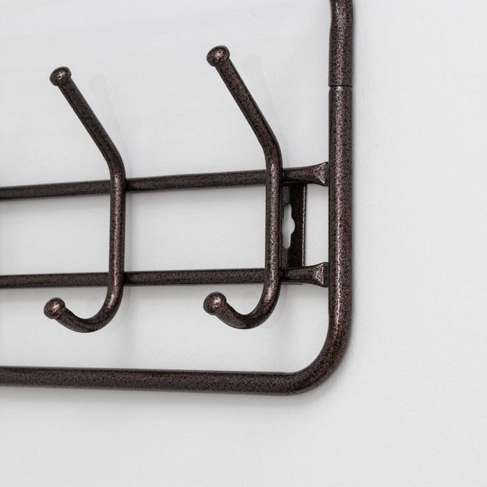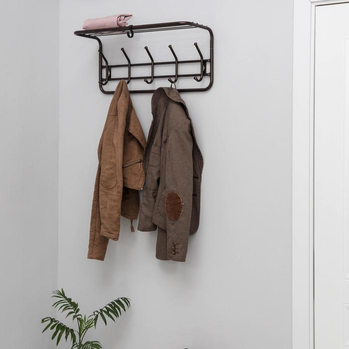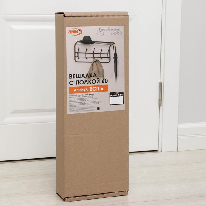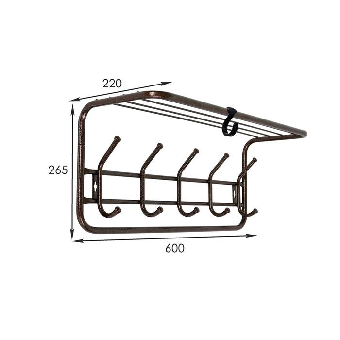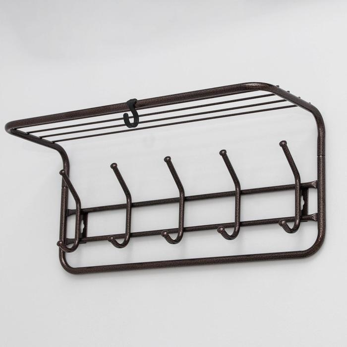 Вешалка настенная с полкой на 5 крючков, 60×22×26,5 см, цвет медный антик
