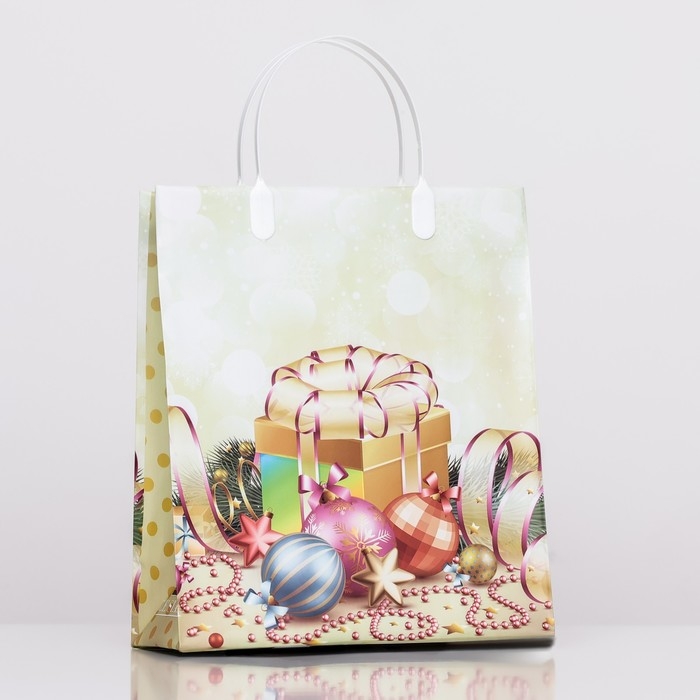 Новогодний пакет из мягкого пластика - пакет универсального назначения. Он сочетает в себе пластиковую сумку для бытовых и хозяйственных нужд и подарочный пакет.