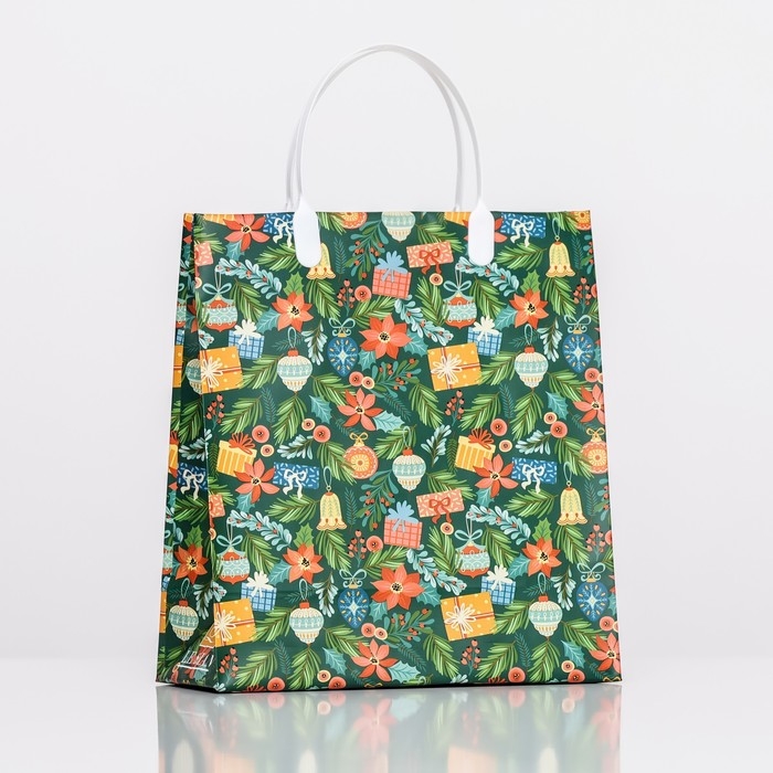 Новогодний пакет из мягкого пластика - пакет универсального назначения. Он сочетает в себе пластиковую сумку для бытовых и хозяйственных нужд и подарочный пакет.