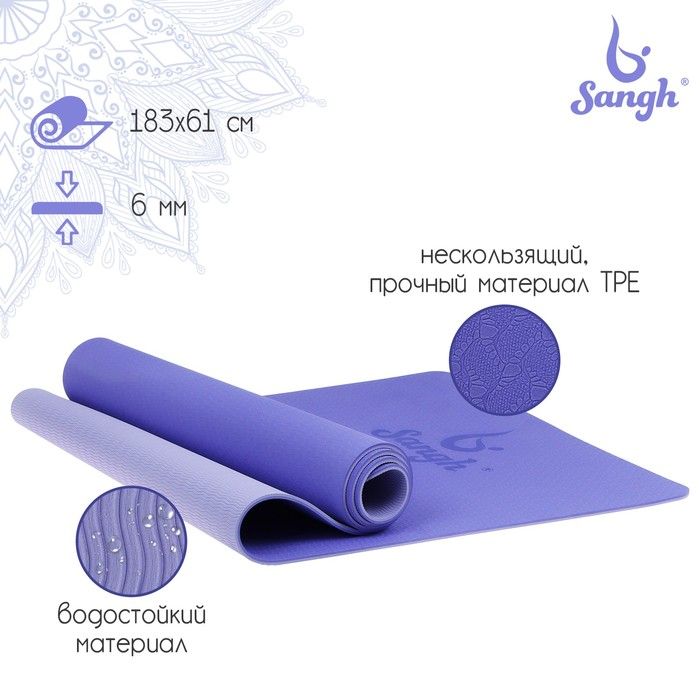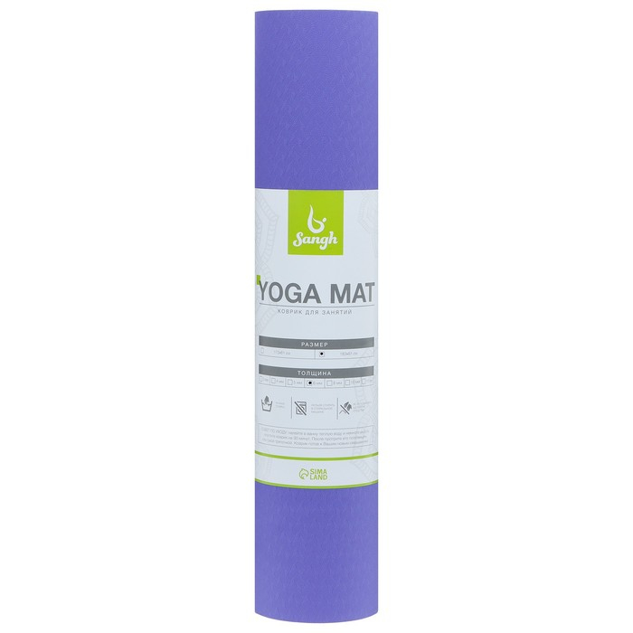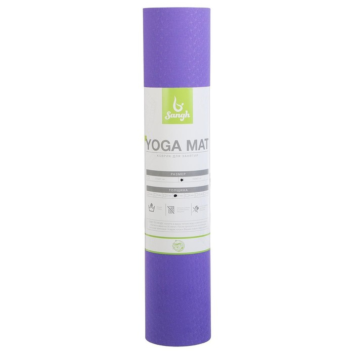 Коврик для йоги Sangh, 183×61×0,6 см, цвет фиолетовый
