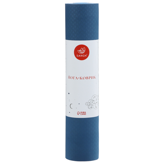 Коврик для йоги Sangh, 183×61×0,6 см, цвет синий