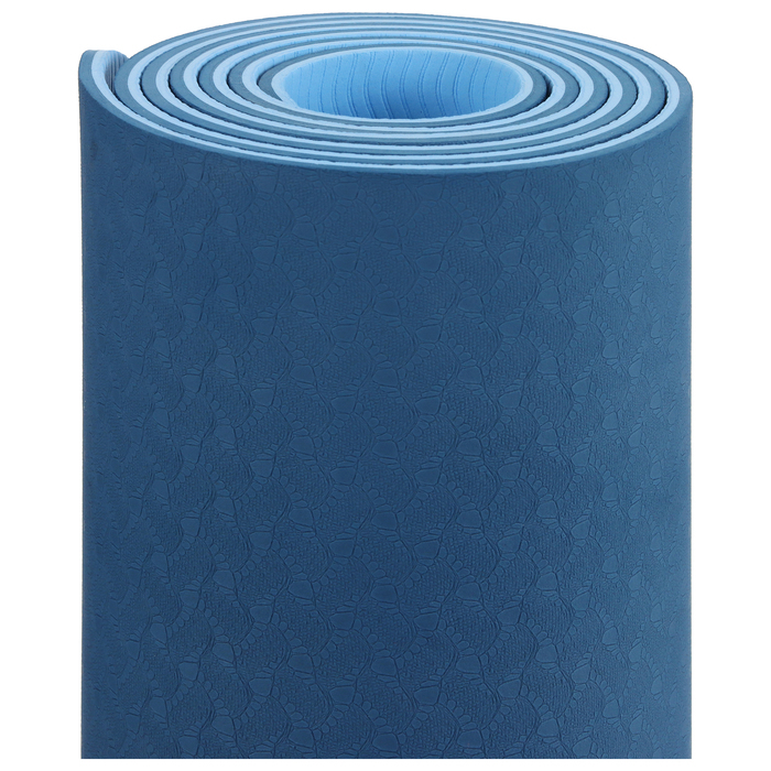 Коврик для фитнеса и йоги ONLYTOP, 183x61x 0,8 см, цвет черный/ультрамариновый