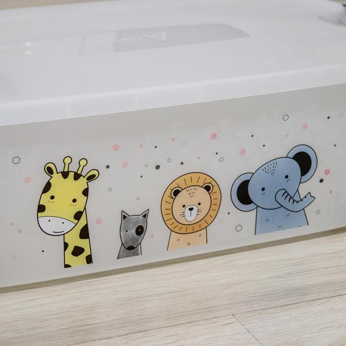 Контейнер для хранения «Мишка и котёнок», 35 л, 50,5×31,5×28 см, на колёсиках, прозрачный