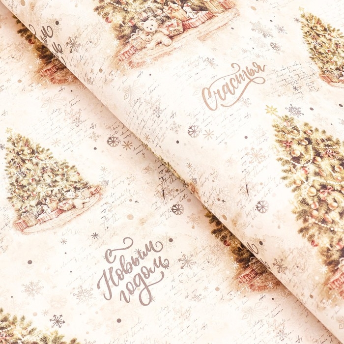 Новый год. Бумага упаковочная новогодняя крафт белый "Зимняя сказка", 70 х 100 см.