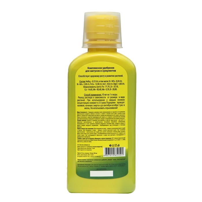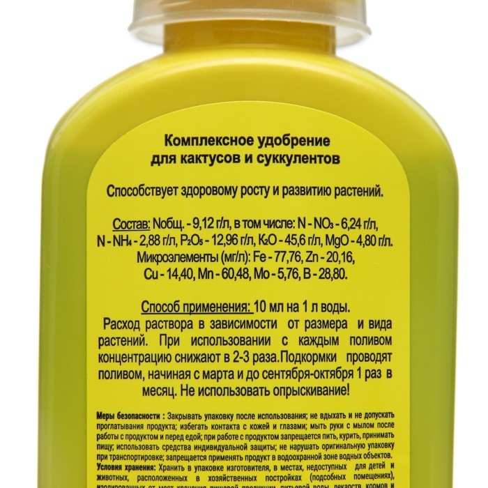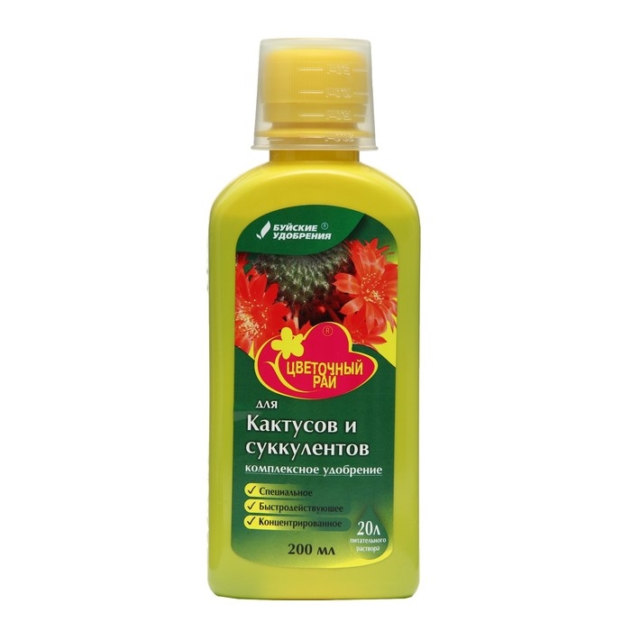 Жидкое комплексное удобрение "Цветочный рай" для кактусов и суккулентов, 200 мл