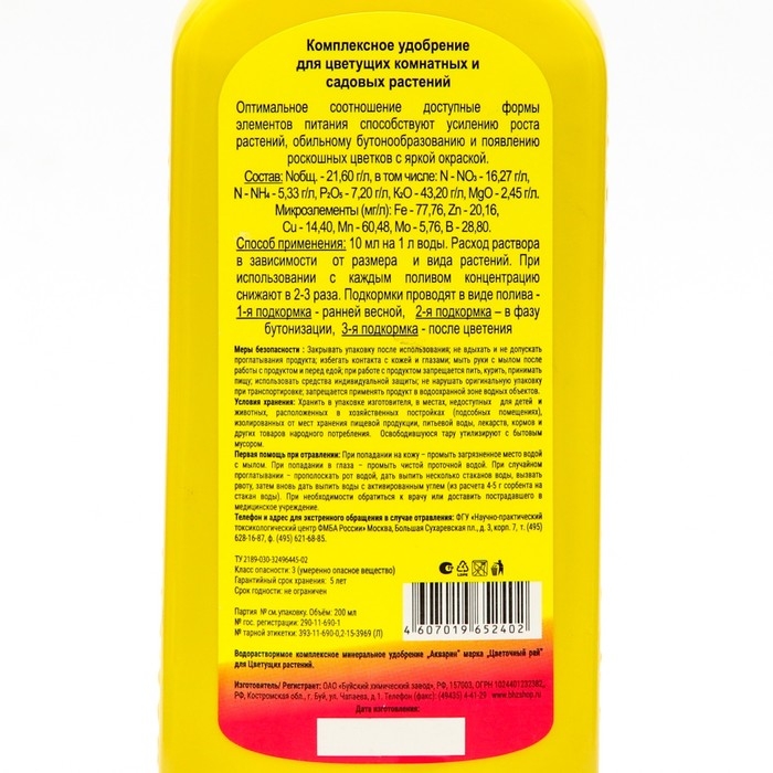 Жидкое комплексное удобрение "Цветочный рай" для цветущих, 200 мл