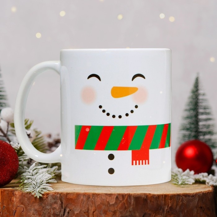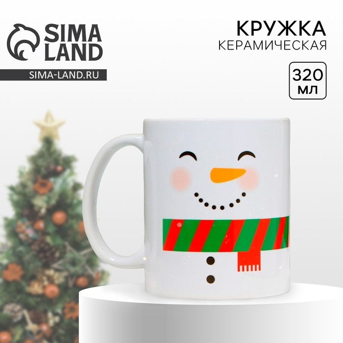 Новый год. Кружка керамическая «Снеговик», 320 мл, цвет белый