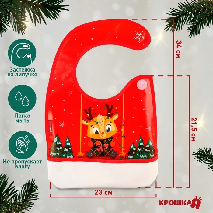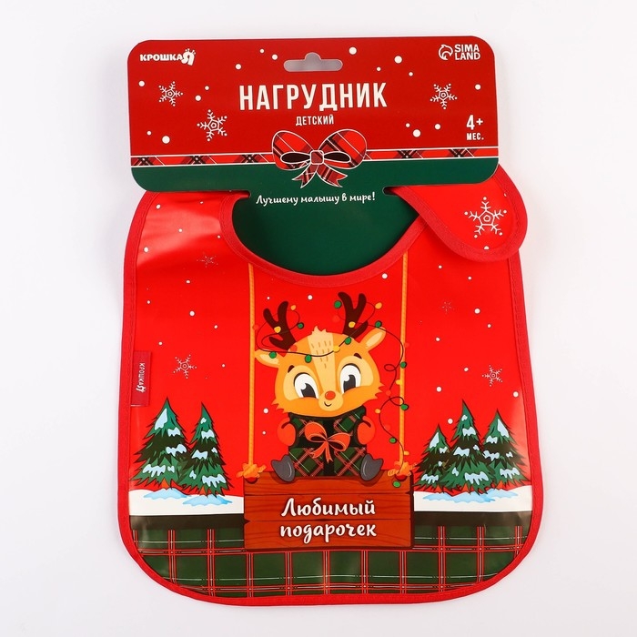 Нагрудник для кормления новогодний «Любимый подарочек», непромокаемый на липучке, с карманом, подарочная упаковка, Крошка Я