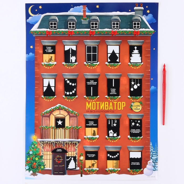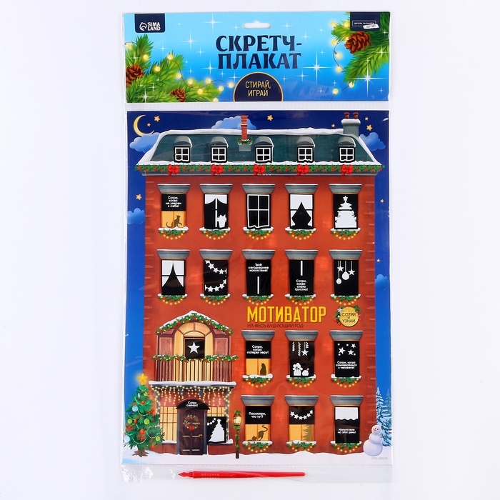 Скретч-плакат на новый год «Новогодний мотиватор» с клапаном, А3