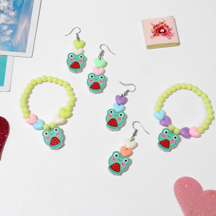 Набор детский «Выбражулька» 2 предмета: серьги, браслет, лягушки, цвет МИКС