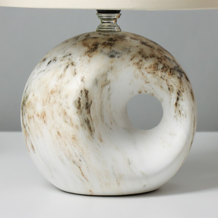 Декоративная настольная лампа «Аделия» с текстильным абажуром украсит интерьер в экостиле. Интересное керамическое основание имитирует камень.