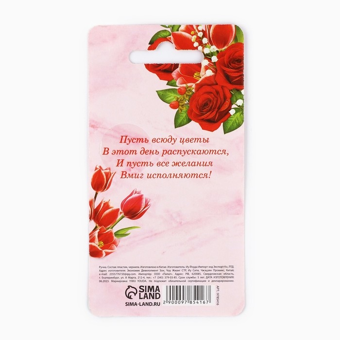 Ручка прикол шариковая помада «С праздником весны», на подложке