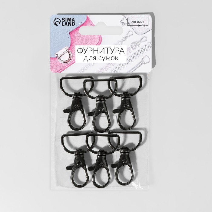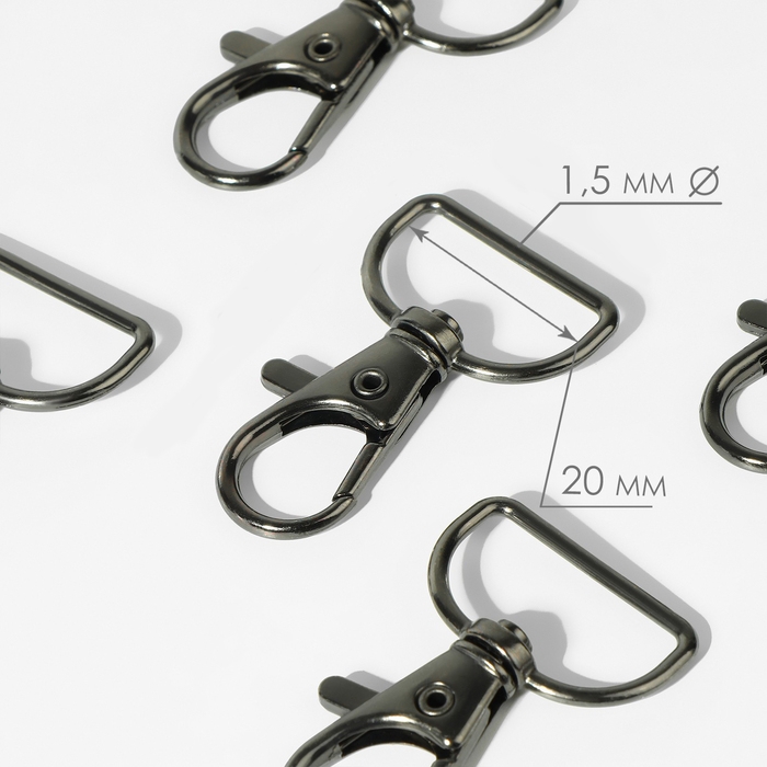 Карабин металлический, 39 × 24 мм / 20 × 1,5 мм, 6 шт, цвет чёрный никель