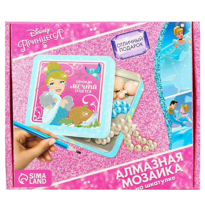 Алмазная мозаика на шкатулке, 14х14 см, Принцессы