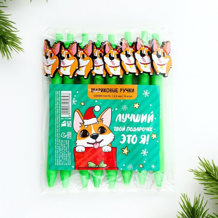 Ручка шариковая автоматическая «Новый год: Корги»