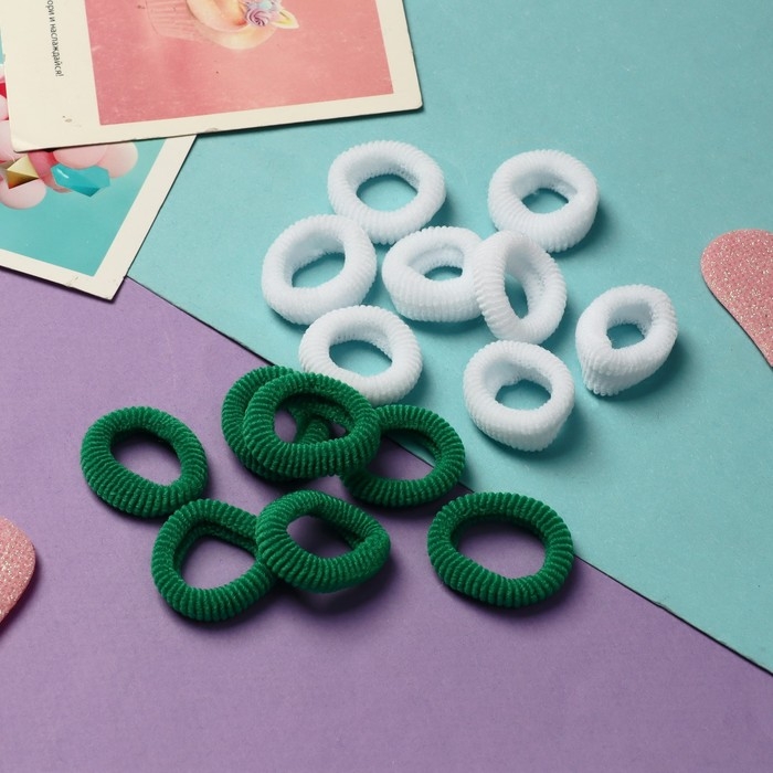Резинка для волос "Махрушка спорт" (набор 100 шт) 2 см, бело-зелёный